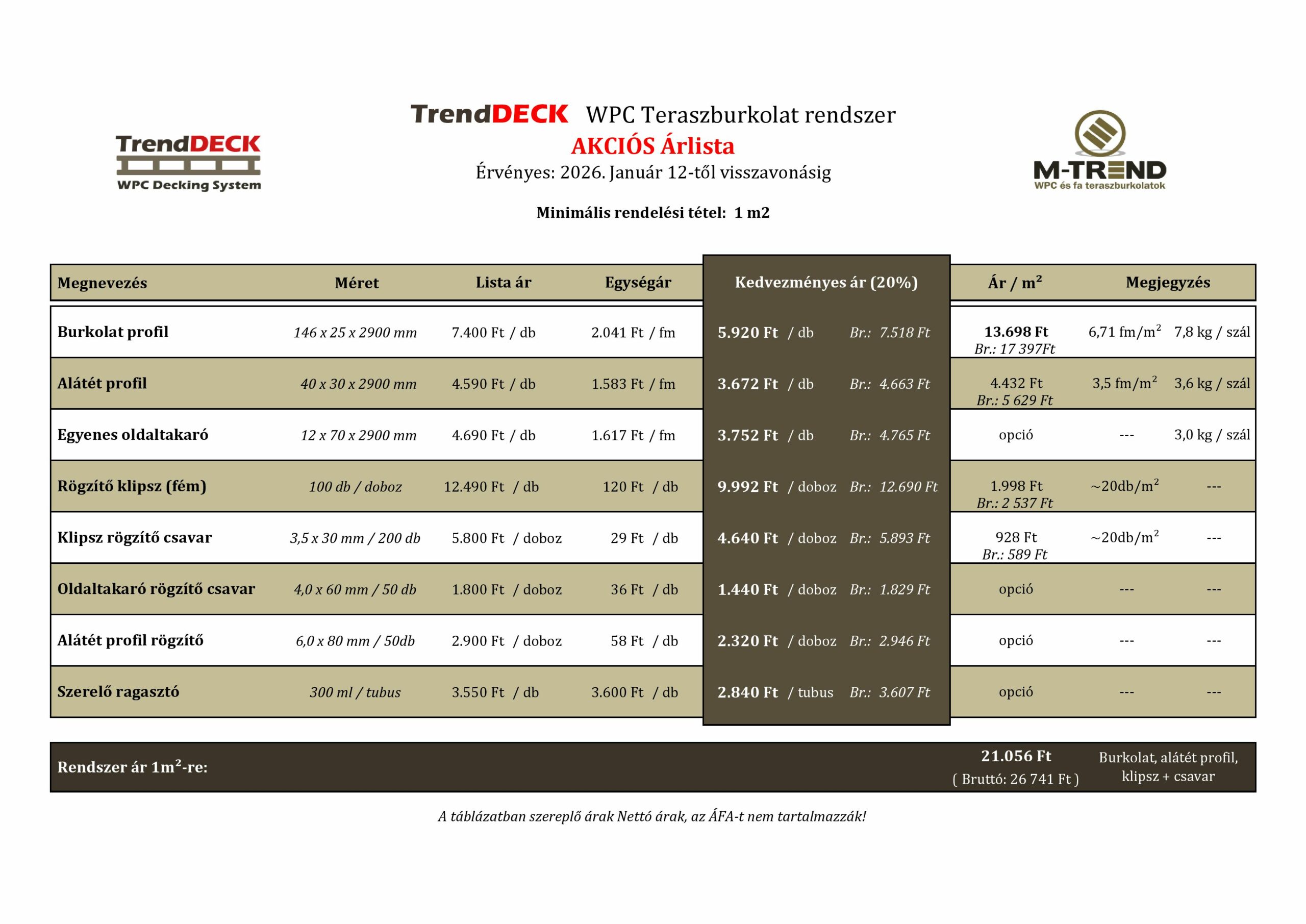 TrendDECK WPC RENDSZER ELEMEK, KIEGÉSZÍTŐK