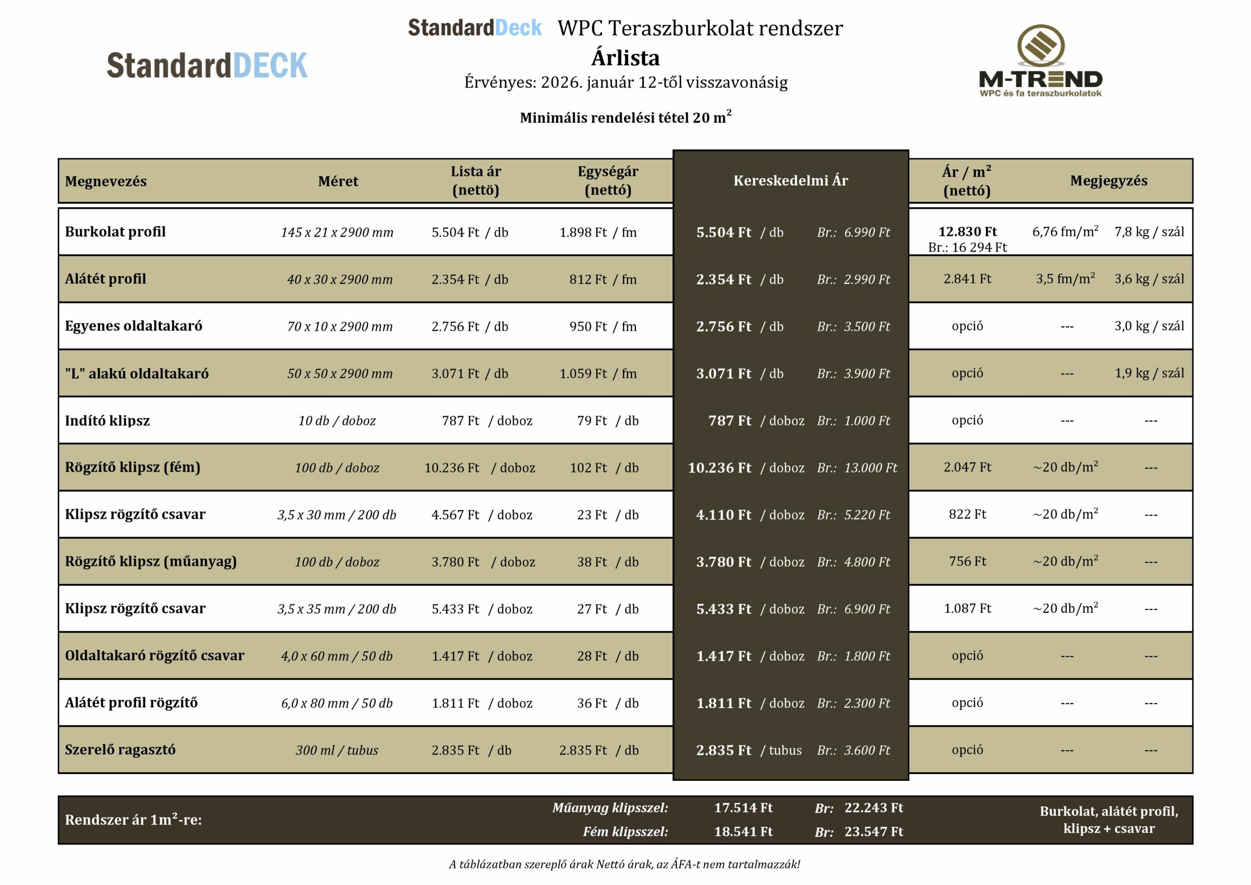 STANDARD DECK WPC RENDSZER ELEMEK, KIEGÉSZÍTŐK